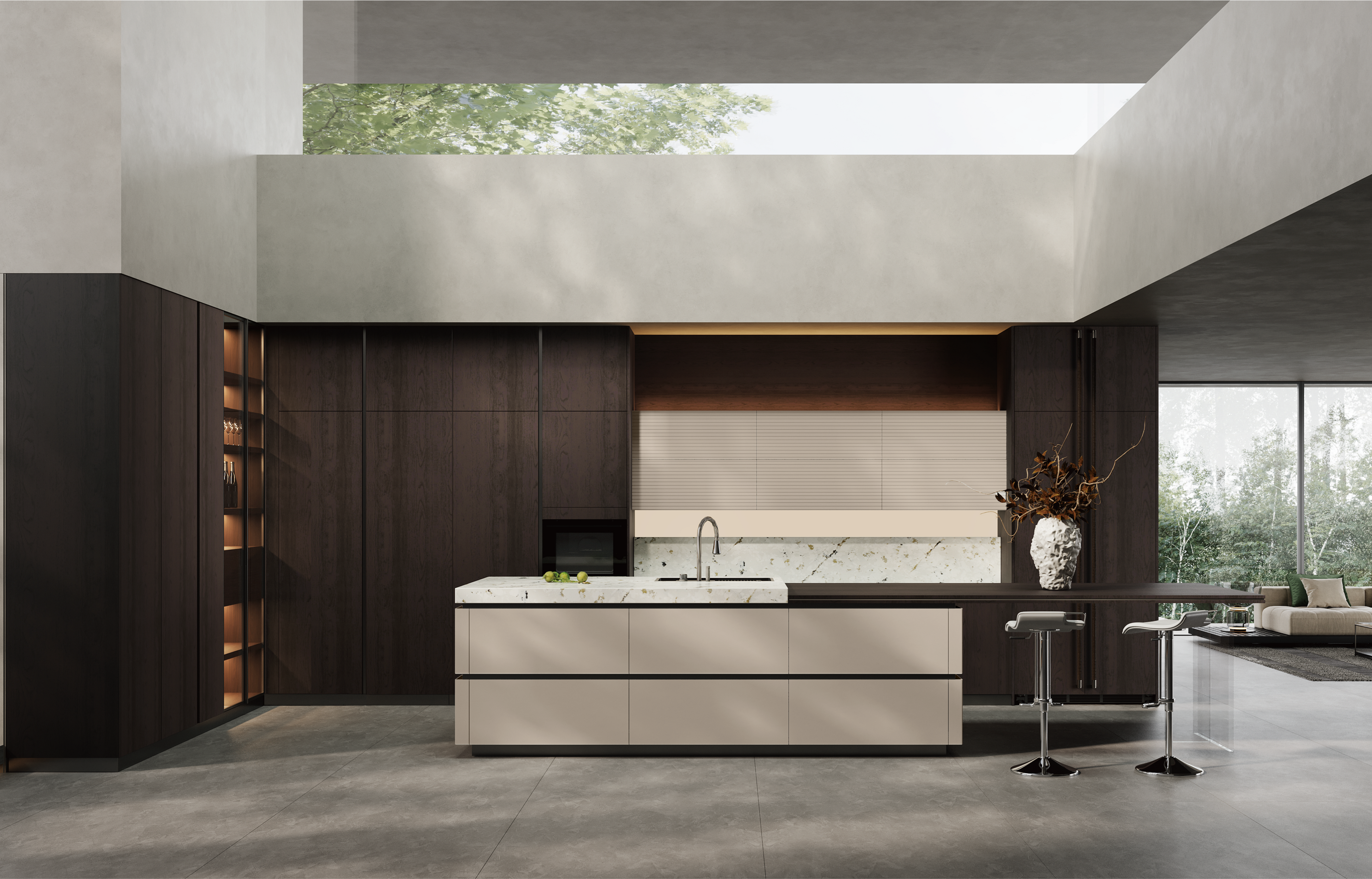 通过KY开元厨柜量体裁柜,定制出适合主厨下厨的烹饪区和洗涤区的舒适高度。